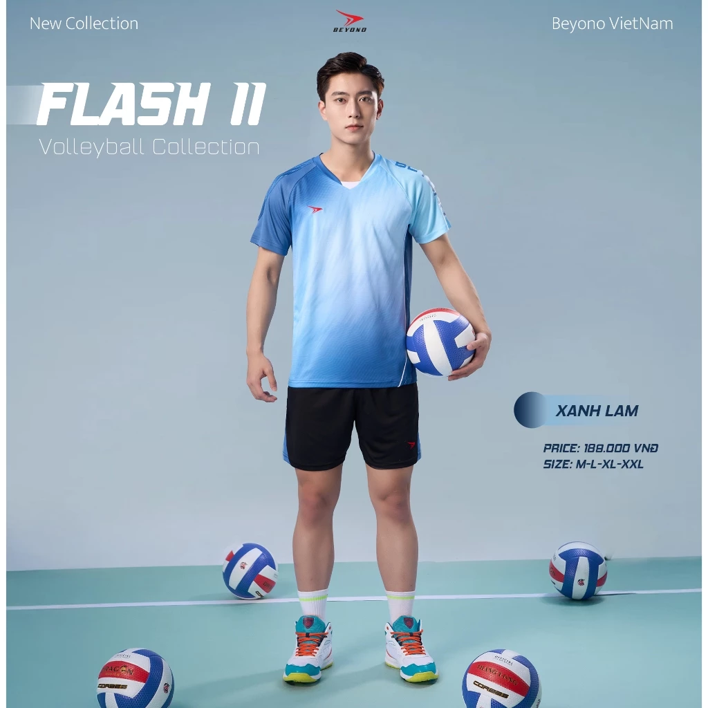 Quần Áo Bóng Chuyền Nam Beyono Flash Lam Thun Mè Thoáng Khí Thể Thao Đương Đại