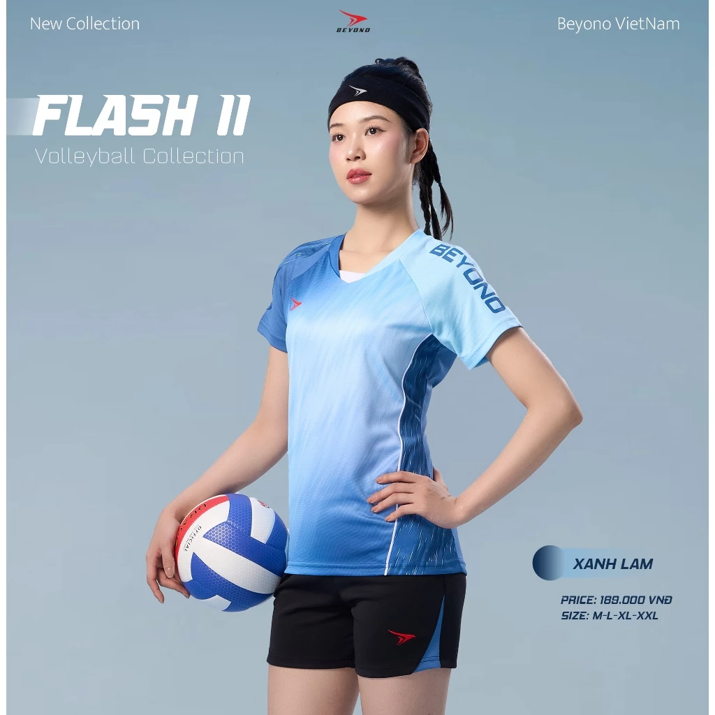Quần Áo Bóng Chuyền Nữ Beyono Flash Lam Thun Mè Thoáng Khí Thể Thao Đương Đại