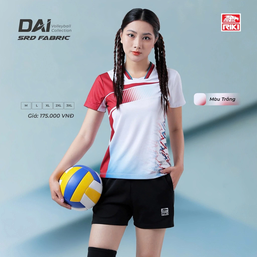 Quần Áo Bóng Chuyền Nữ Có Túi Riki DAI Trắng Thun Mè SRD Thoáng Khí Thể Thao Đương Đại