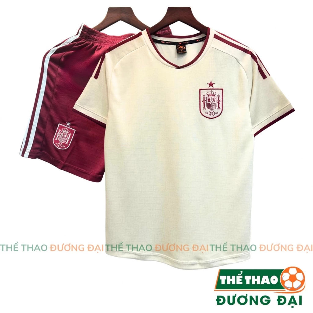 Review Quần Áo Bóng Đá ĐT Tây Ban Nha Kem Đỏ WC26 Thun Mè S-COMF Thoáng Khí Thể Thao Đương Đại