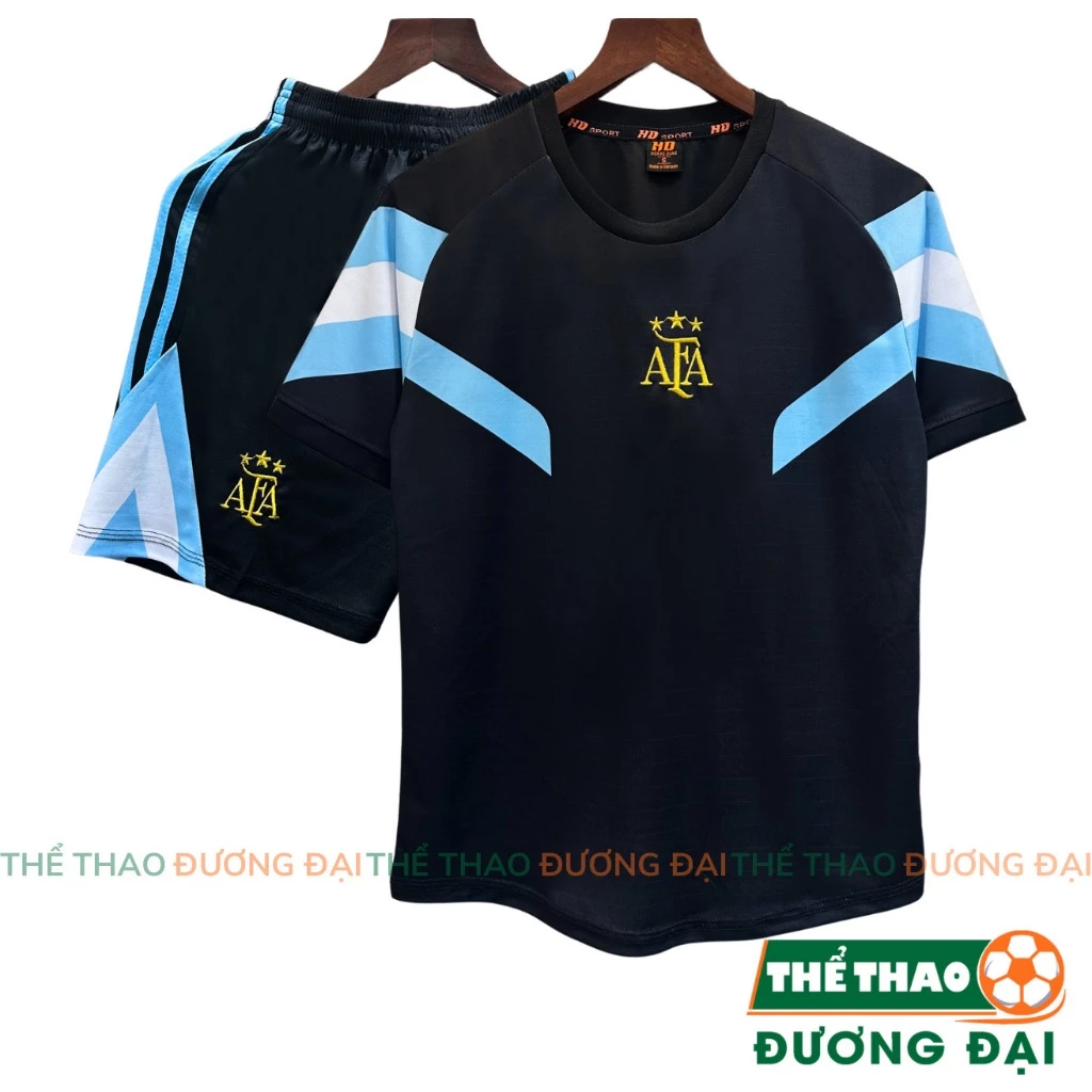 Quần Áo Bóng ĐT Argentina Đen Training Thun Mè S-COMF Thoáng Khí Thể Thao Đương Đại